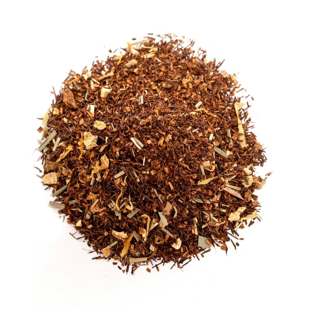 Rooibos z limonką i imbirem – orzeźwiająca i pikantna czerwona herbata bezkofeinowa. 100 g